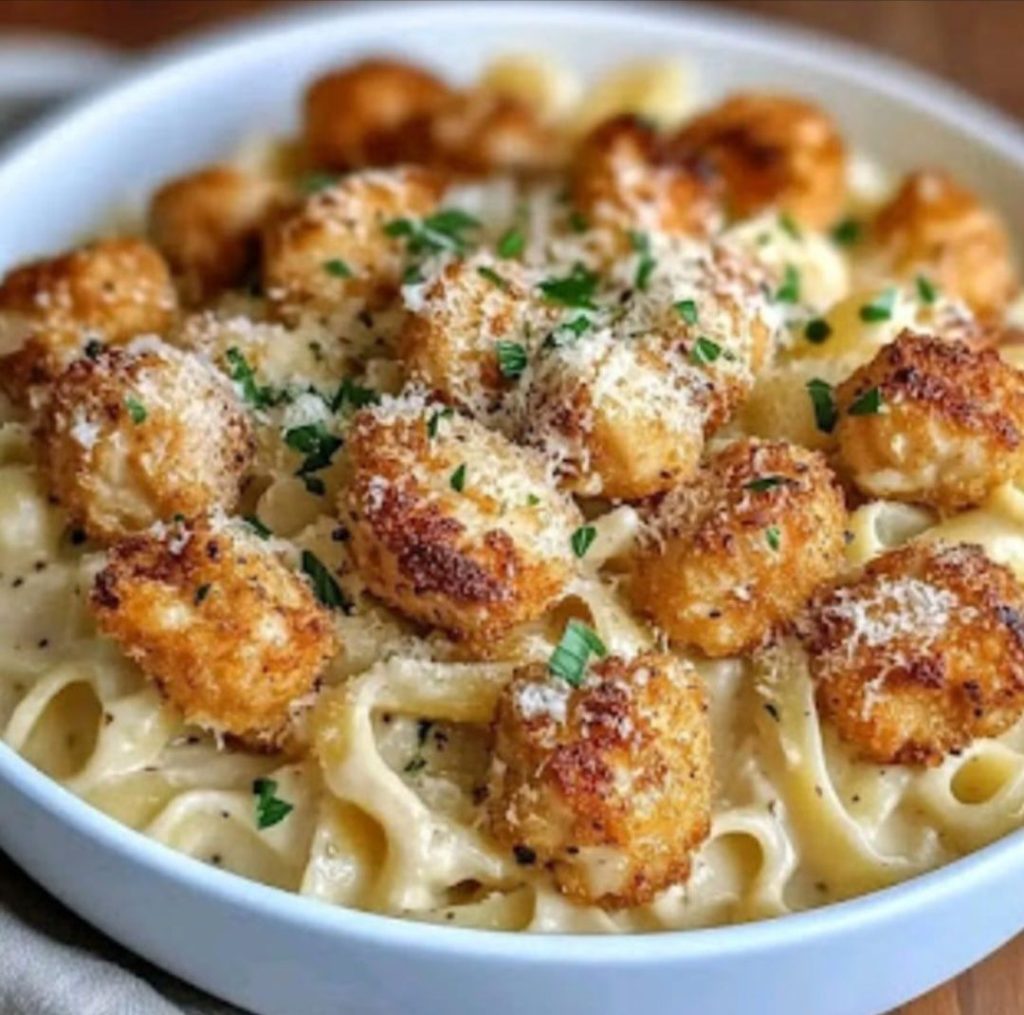Golden, buttery chicken bites tossed with creamy Parmesan pasta… the kind of comfort food that disappears fast and makes everyone ask for seconds! 😍