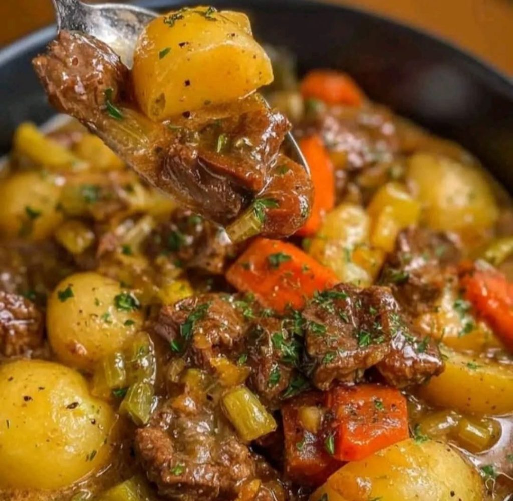 A cozy, flavorful beef stew with creamy broth, tender meat, and aromatic herbs β perfect for cold days! β€οΈ