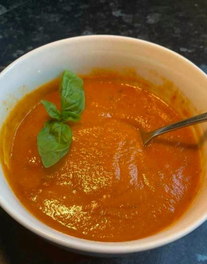 π Roasted Tomato, Red Onion, Garlic & Basil Soup (with Red Lentils)